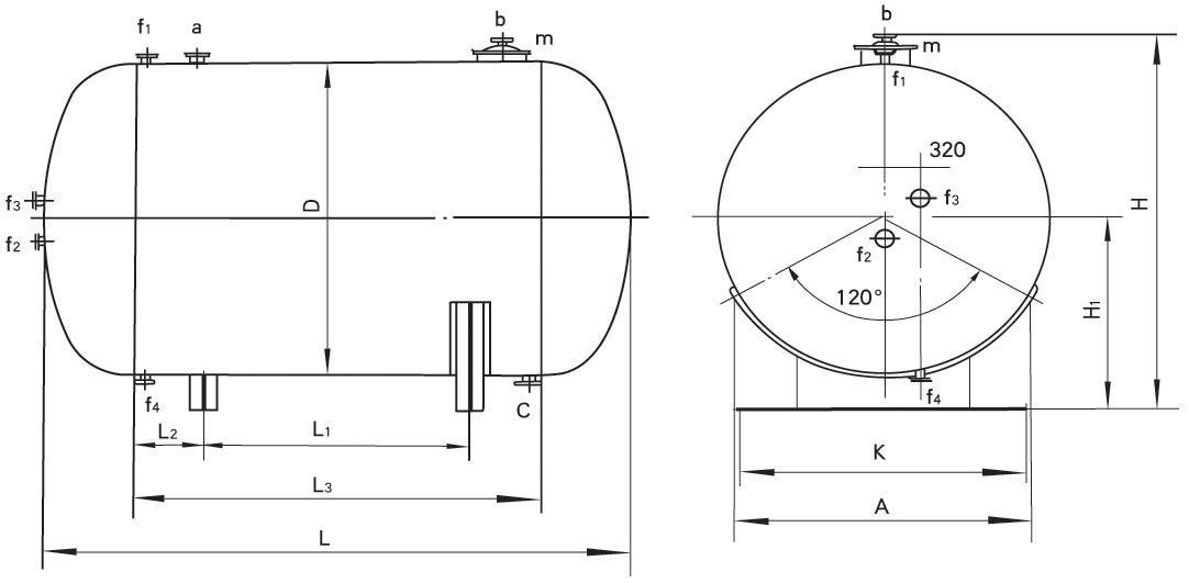 卧式贮罐外形尺寸及管口尺寸表